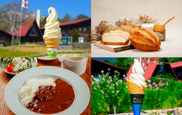 左上より「①清泉寮オリジナルソフトクリーム / 500円」「②清泉寮パン工房 ミルクパン / 480円」