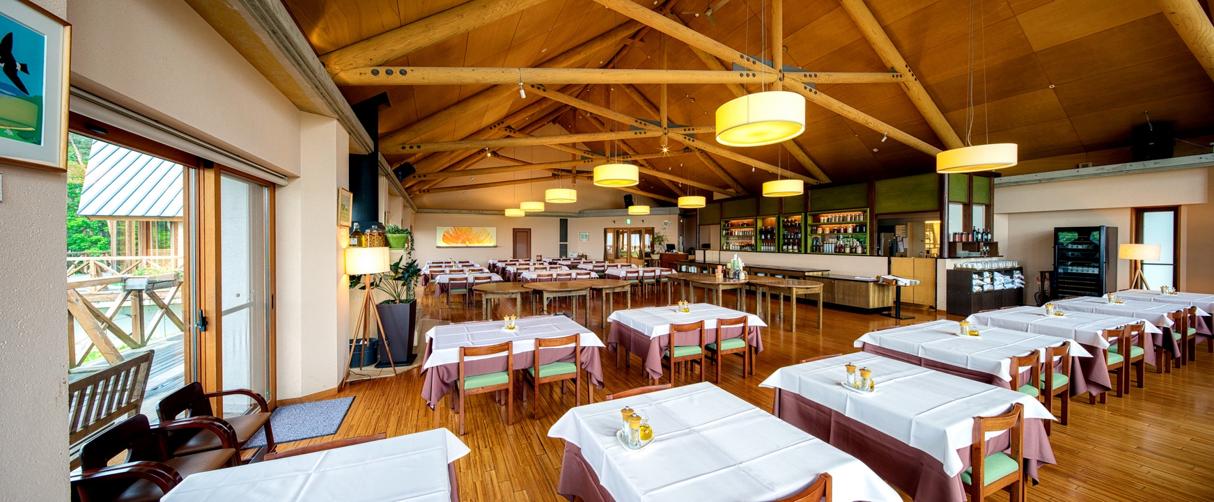 和食・洋食を織りまぜたフルビュッフェです。自家牧場で搾った有機ジャージー牛乳や新鮮野菜、清里産ハムやこだわり卵のお料理をお楽しみください。おすすめはフレンチトーストと和食シェフのこだわりのお漬物。さわやかな一日を八ヶ岳の朝食で始めましょう。